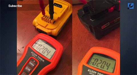 NOPE! The above picture was taken recently by our friends at Tools in Action (watch full video below) and shows that both a Dewalt 20V Max and Milwaukee M18 battery charge at 20.4V fresh off the charger. We’ve explained it before but they say a picture is worth a thousand words. On first pull of the trigger both drop to 18V and you get the nominal rating. This is because batteries are made up of smaller 3.6V (4V max) lithium cells which are regulated for exact outputs and used in a wide range of different electronics. This means all 10.8V=12V Max, all 18V = 20V Max, 36V = 40V Max. Our friends at Tools in Action are finding the same thing we are however many people still are confused or think 20V Max is higher than 18V.