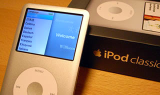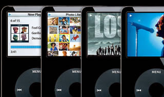 redesigned fifth-gen iPod with a thinner case, a larger 2.5-inch 320 x 240